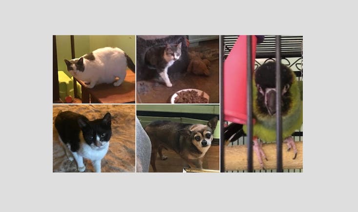 LONG ISLAND, NY — After the owner of five animals — including three cats, a dog, and a parrot —was hospitalized indefinitely with a serious health issue, the pets are in desperate need of homes and care