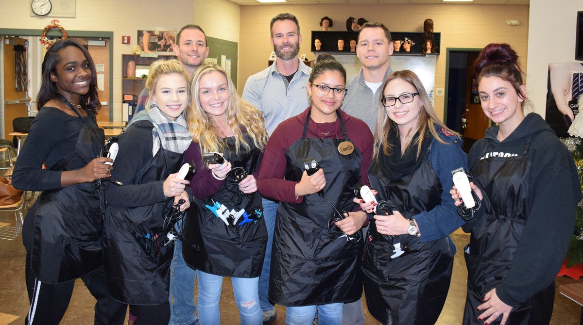 From William Floyd School District: Several William Floyd teachers participated in “No Shave November,” a month-long journey during which participants give up shaving as a way to raise awareness and provide support in the fight against cancer. Altogether, the teachers raised $1,067 to benefit the Prevent Cancer Foundation and St. Jude Children’s Research Hospital. Then on December 1, three William Floyd High School teachers visited William Floyd High School cosmetology students to get their beards shaved or trimmed.