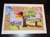 In the work, students start out as children, featured as LEGOs, pictured in front of an elementary school constructed of blocks beneath a tree made with handprints. This section will be on the back cover. That cute and playful portion of the artwork is contrasted by the culmination of the William Floyd journey – graduation – depicted by two students in their graduation gowns holding up their diplomas as the last piece of the puzzle is about to be put into place.
