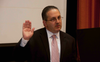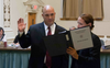 Photo 1: Reelected Smithtown Board of Education President Christopher Alcure takes the oath of office during the Board of Education annual reorganization meeting.