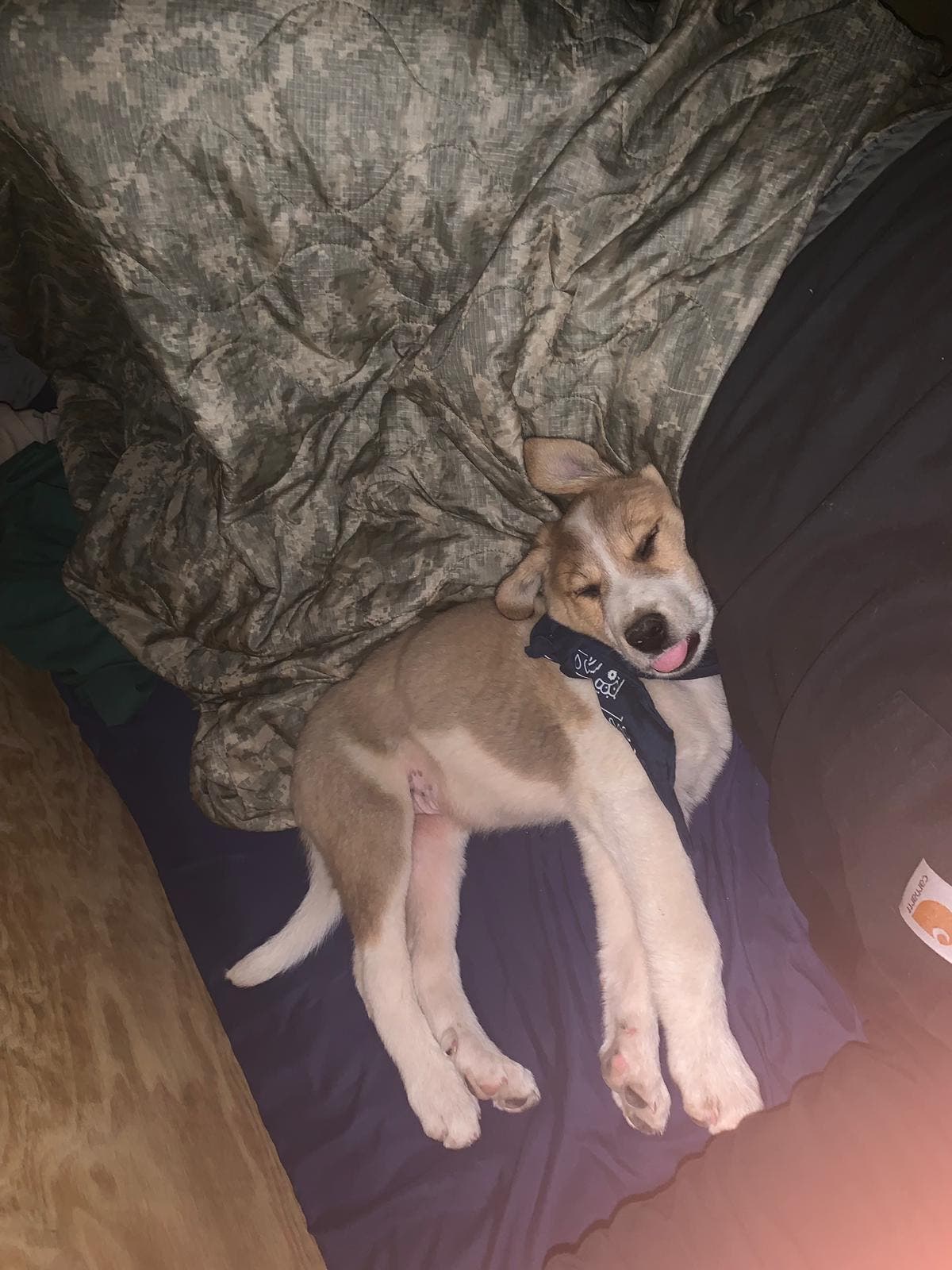 "Jonesy is definitely a moral booster on the camp," he wrote. "Everyone loves puppies, you know, and a few people would love to take him home, but the costs had them change their mind. I don’t think he would have lived very long after we took him for the living conditions were harsh."