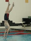 Chuck Herrmann was key for the Bulls against East, winning the 100-yard backstroke with a time of 1:00.68 plus the third leg of the winning 400-yard freestyle relay (Matt DeVito, Eric Damm and Bill O'Brien rounded out the relay team) that timed a combined 3:44.83, he swam the lead-off leg of the tied-for-first-place 200-yard medley relay team (combined time 1:48.58), and filled in for the 200-yard individual medley at the last moment, finishing in 2:14.26 for another second placement.