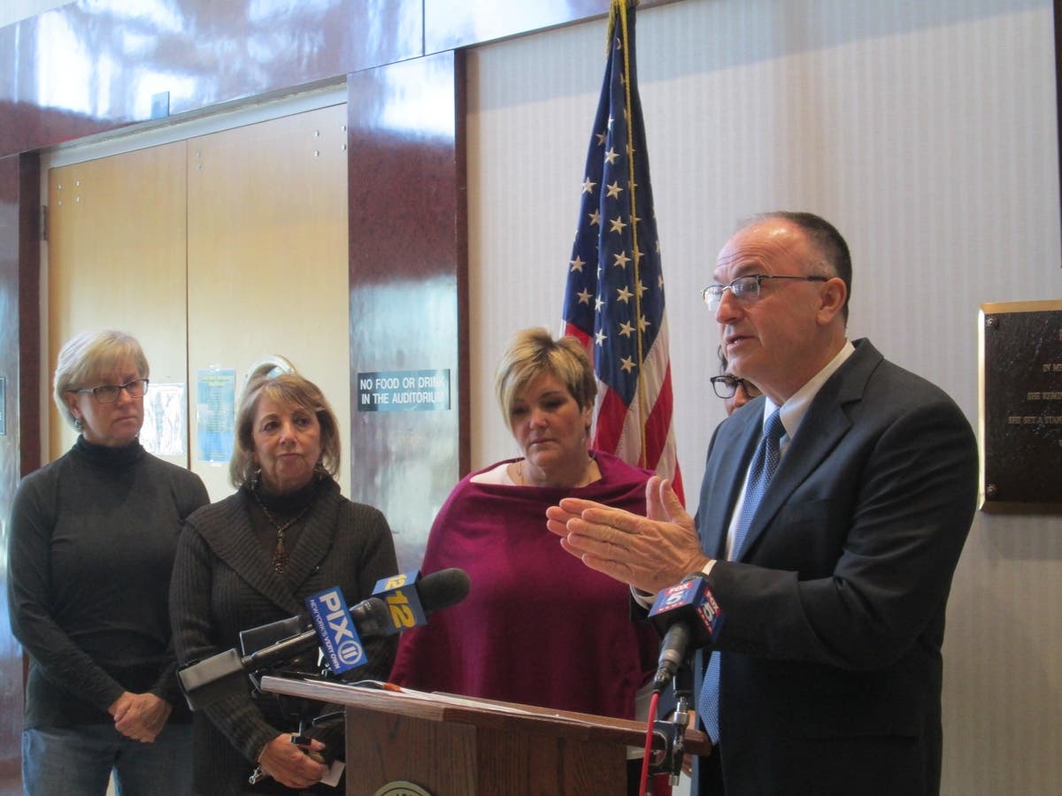 Pictured at the press conference are from left Kim Revere, Executive Director of Kings Park in the kNOw, Debbie Virga, president of the Commack Coalition of Caring, Kym Laube, Executive Director of HUGS, Steven Chassman, Executive Director of LICADD, and Suffolk Legislator Rob Trotta.