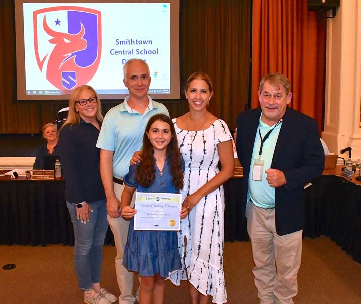 ST. JAMES, NY — Gia Mayer, a fifth grade student at Mills Pond Elementary School, was named a winner of a PSEG-sponsored contest and was recognized by the Smithtown Central School District Board of Education on Tuesday, the district announced.