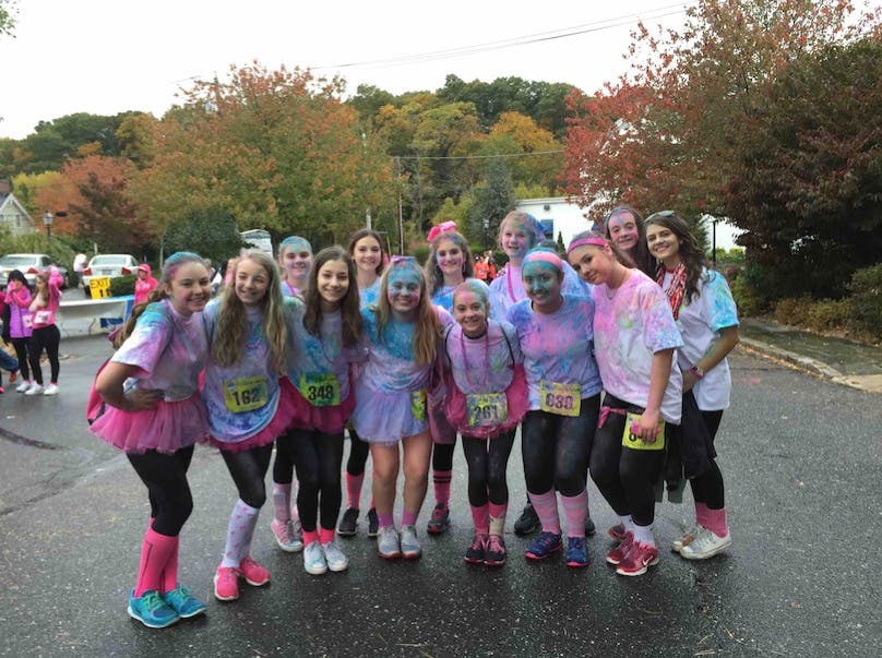 Members of the Nesaquake Middle School cheerleading team in the Smithtown Central School District, along with their families, participated in the Walk for Beauty Color Run in Stony Brook on Oct. 25. The school’s participants raised more than $600 for breast cancer research.
