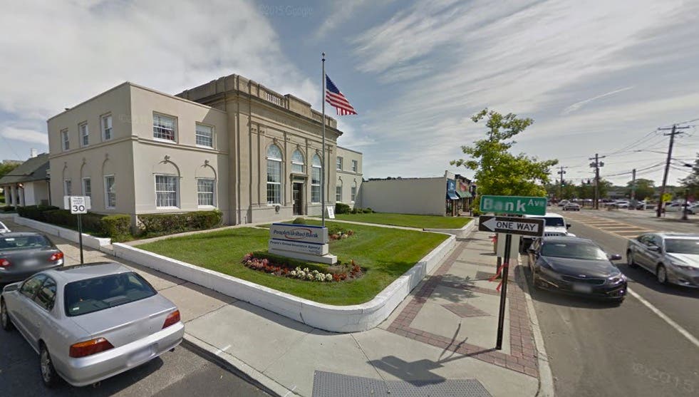 The incident occurred outside this bank in Smithtown on Tuesday. (Google Maps photo)