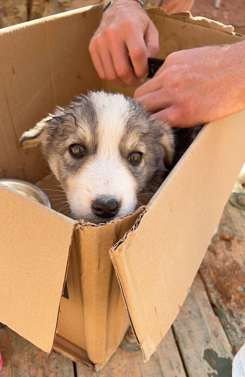The sergeant opened the bag and was greeted by the "two sweetest, most angelic eyes," according to Paws of War. The tiny pup flopped in the bag and tried to get up and wag his tail, but he was frail and could hardly move.