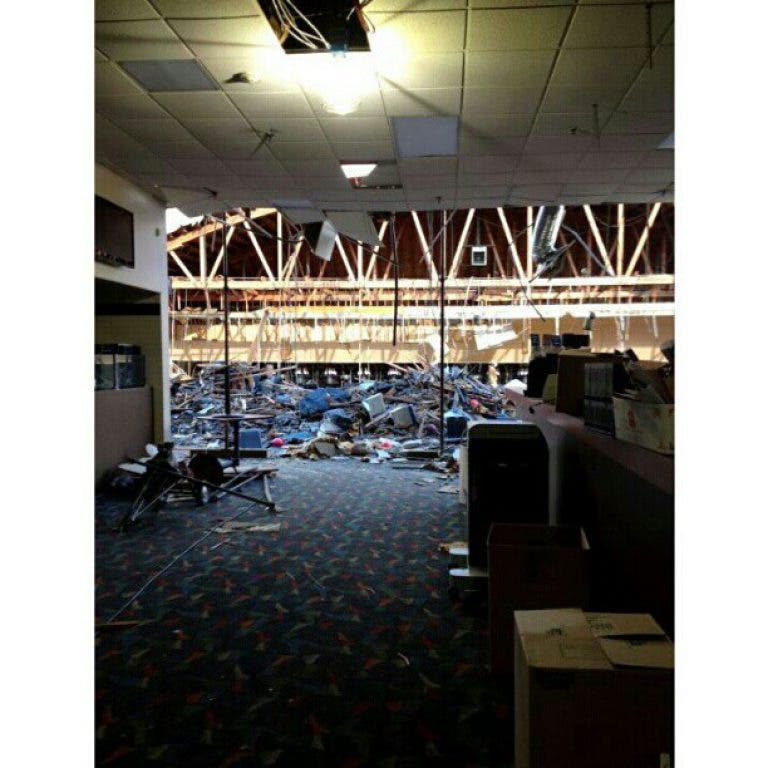 Local shares this photo taken from the inside of the collapsed AMF Smithtown Lanes.