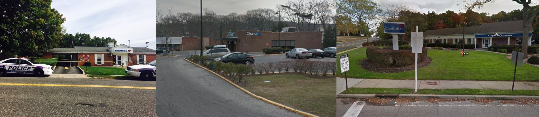 Further investigation by Pattern Crime Unit detectives revealed that the suspects were responsible for robbing the Chase Bank, located at 1395 Route 25A in Setauket on Oct. 2 and the Capital One Bank, located at 250 Smithtown Boulevard in Nesconset on Oct. 7. In the Setauket robbery, the man was wearing a sling and bandages on his face. The same man was wearing a surgical mask during the Nesconset robbery, police said.