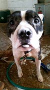The group has put several dogs up for adoption, including three dogs who were rescued from from the yard, where they had survived the Louisiana flooding, despite being tethered and unable to escape.