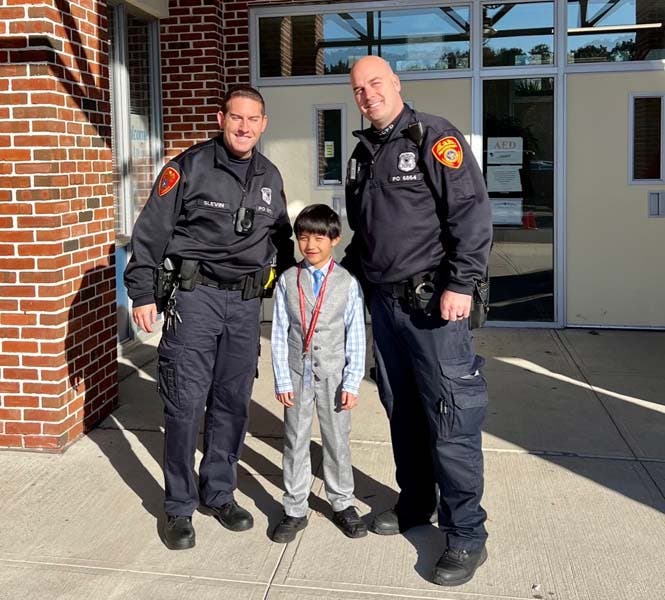 The first-grader's prize was acting as "Principal for the Day" on Friday. He helped lead the school’s evacuation drill with the Suffolk County Police Department in addition to taking on other responsibilities.