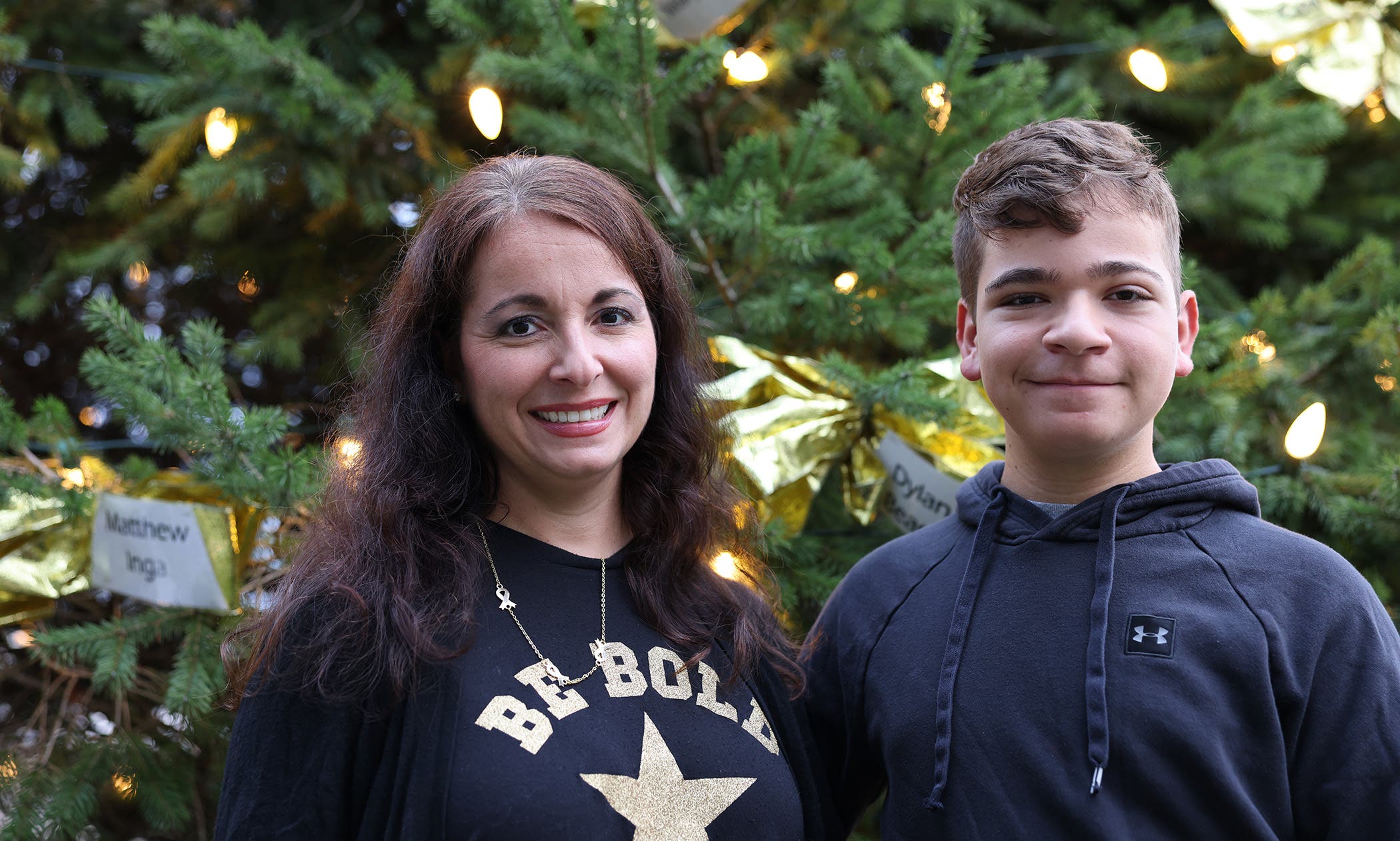 The tree at Town Hall was adorned in gold bows, bearing the names of local children who are actively fighting cancer, in remission or have since died. The lights and ribbons were donated to the town courtesy of Katia Conte, founder of the Daniela Conte foundation in 2021.