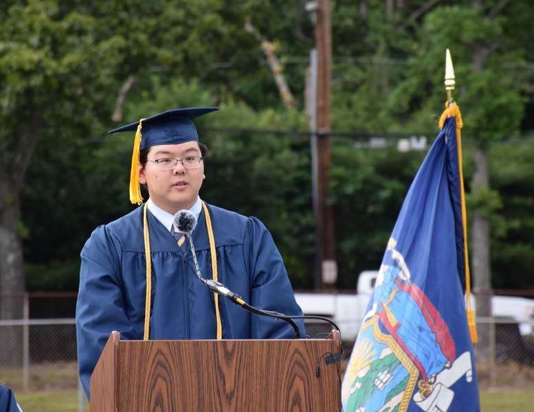 Stephen Jung, Smithtown High School West honor speaker, spoke to the class about overcoming the coronavirus pandemic.