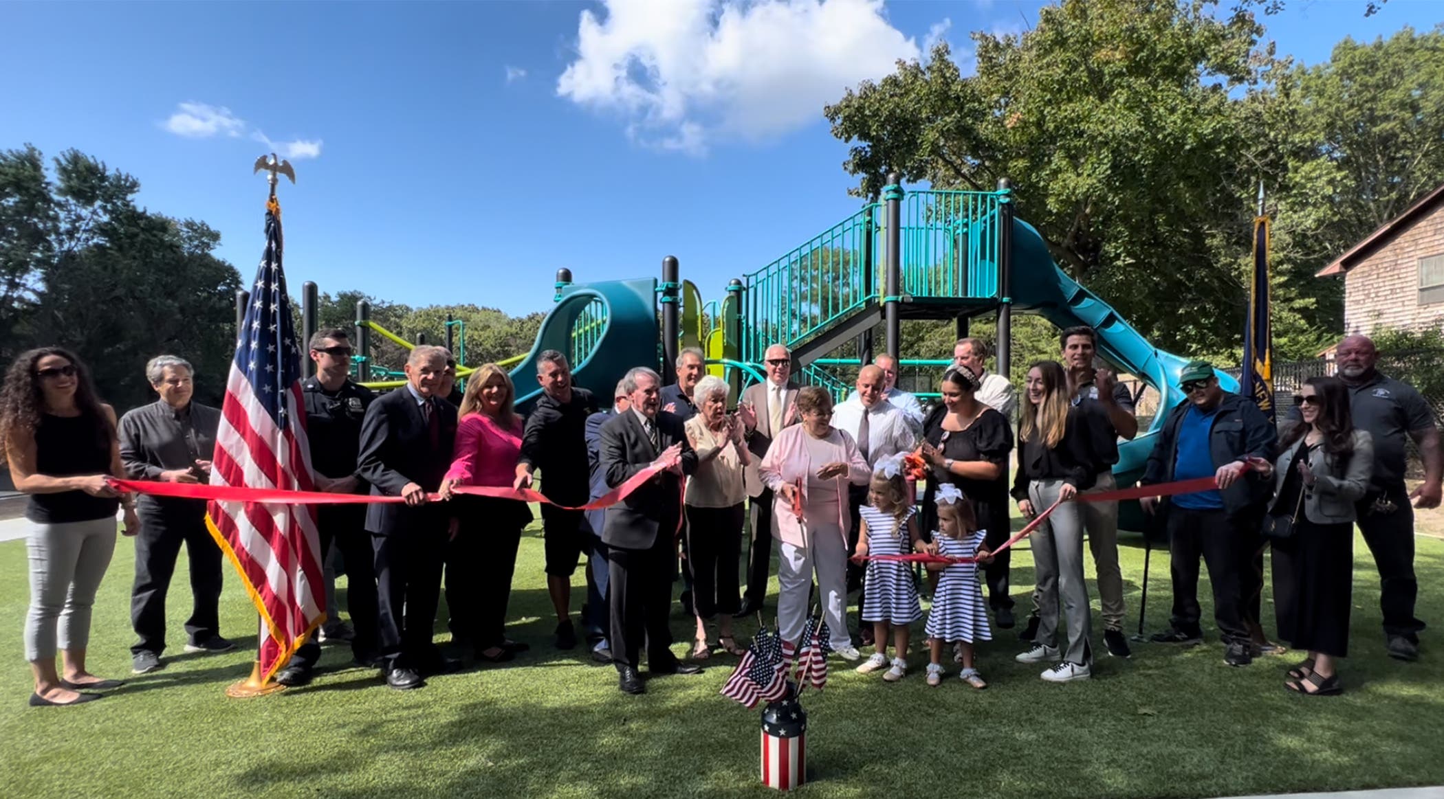 Supervisor Ed Wehrheim led the ceremony together with town officials, the Baker family, the Cosentino family, Baker's neighbors, and the Hauppauge Recreation Development Association. The ceremony included a ribbon cutting and sign unveiling at the newly renovated “John E. Baker Memorial Park."