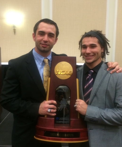 Over this past weekend two Smithtown HS West graduates were honored and received their NCAA Championship rings as members of the Limestone College men’s lacrosse team. Pictured are Glenn Trovato (left) who graduated this past May with a business degree and who was also named 1st team All Conference for the past 2 years and Chris Watson (right) who is still playing on the team as a junior at Limestone.