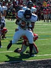 The Bulls did not stop there continuing their attack with touchdowns by Anthony Gatto (14 yard run) as well as a Gatto 47 interception return for a touchdown. Barruch topped that with a 50 yard touchdown run to cap the score at 41-7 at half-time. Kicker Laderious finished the game off with a 39 yard field goal into the wind.
