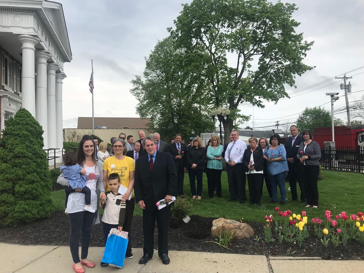 On Thursday, town officials and community leaders joined together with the Cianci family to dedicate the first rose bush in honor of Lucas Cianci in front of Town Hall.
