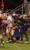Hills West, however, rallied to score a touchdown in the final minute of the second quarter. A 32-yard pass from Busuttil to Deven Williams set up Busuttil's four-yard scoring run that cut the Bulls' lead to seven.
