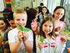 Photo A: Fourth-graders at Mt. Pleasant ES painted colorful Long Island Sound scenery in the style of Neo-pop artist Romero Britto for their large wooden replica of Whisper the Bull.