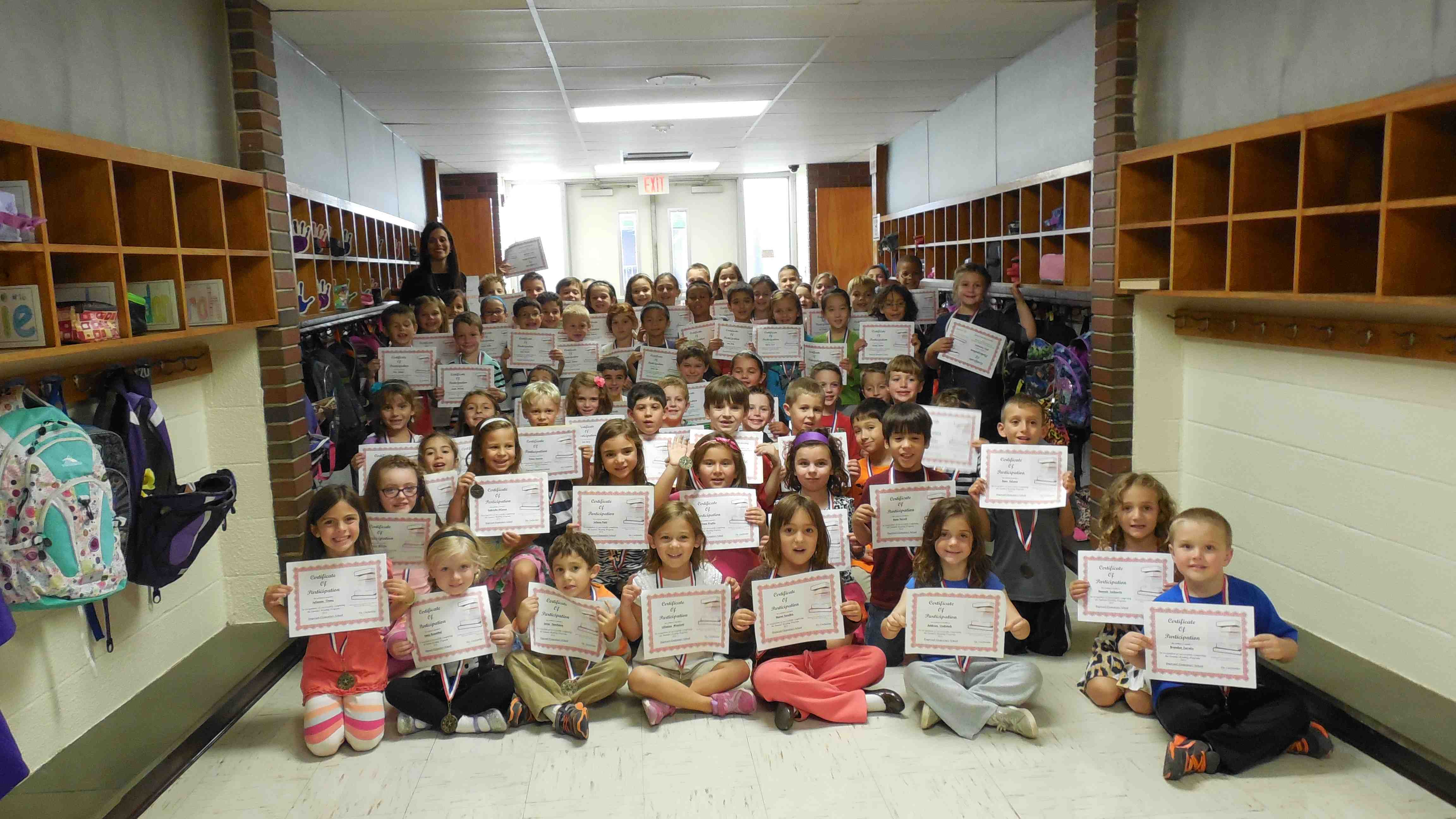 Photos courtesy of the Smithtown Central School District: At Dogwood ES, Principal Renee Carpenter awarded ‘Star Reader’ certificates to summer readers. Ms. Carpenter is pictured here congratulating participants in grades K-2.