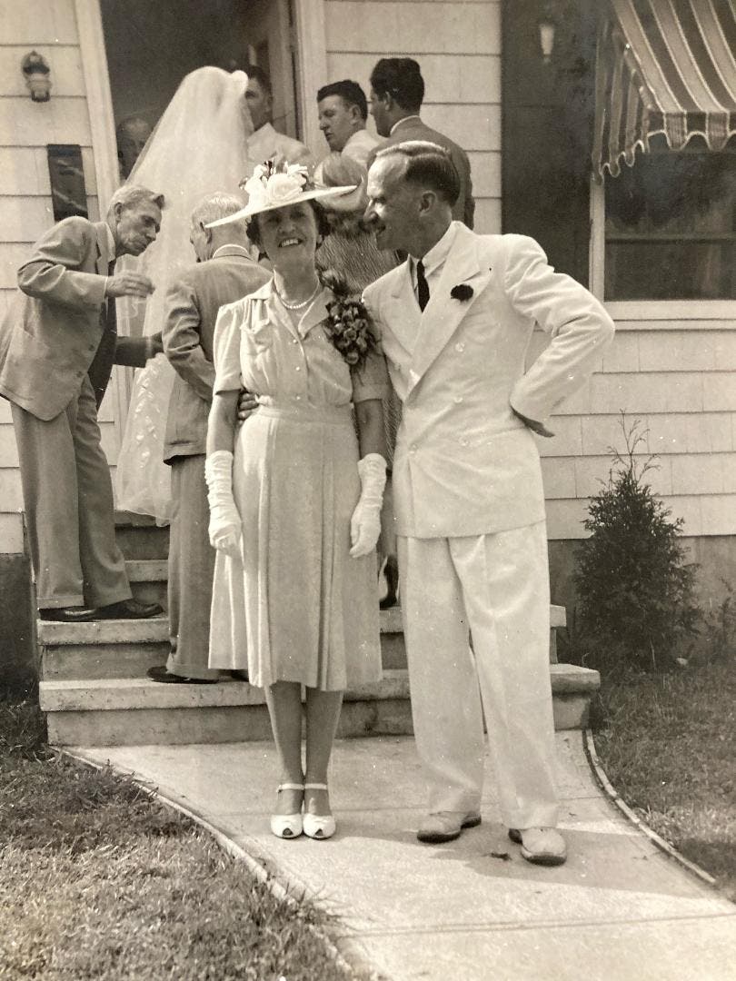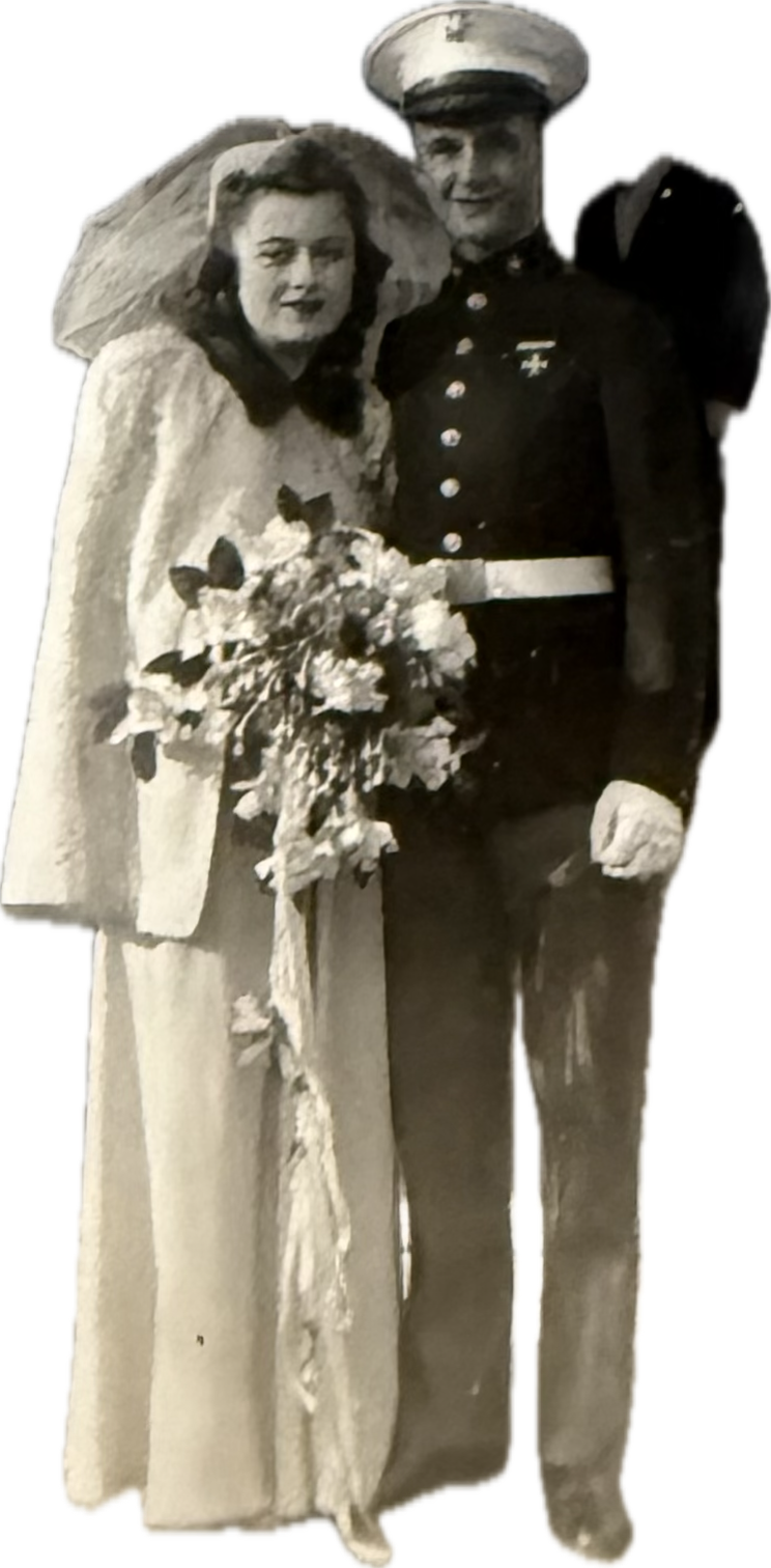 Karen Muller Lucas sent a picture of her beloved parents Ed and Shirley Muller, both gone, from their wedding in August 1944. "My dad shipped out five days later to the Pacific and was on Iwo Jima six months after that."