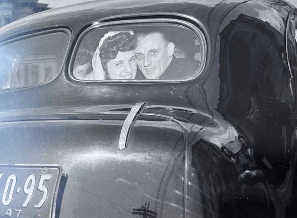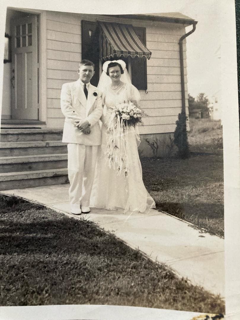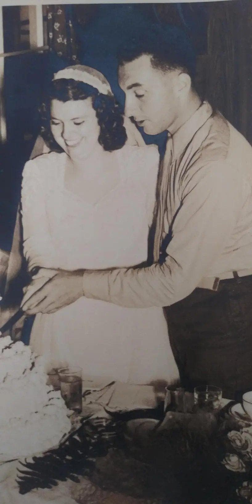 Bonnie Williams shared a beloved photo of her parents, Dudley and Delores Burrus, on their wedding day in February 1945.