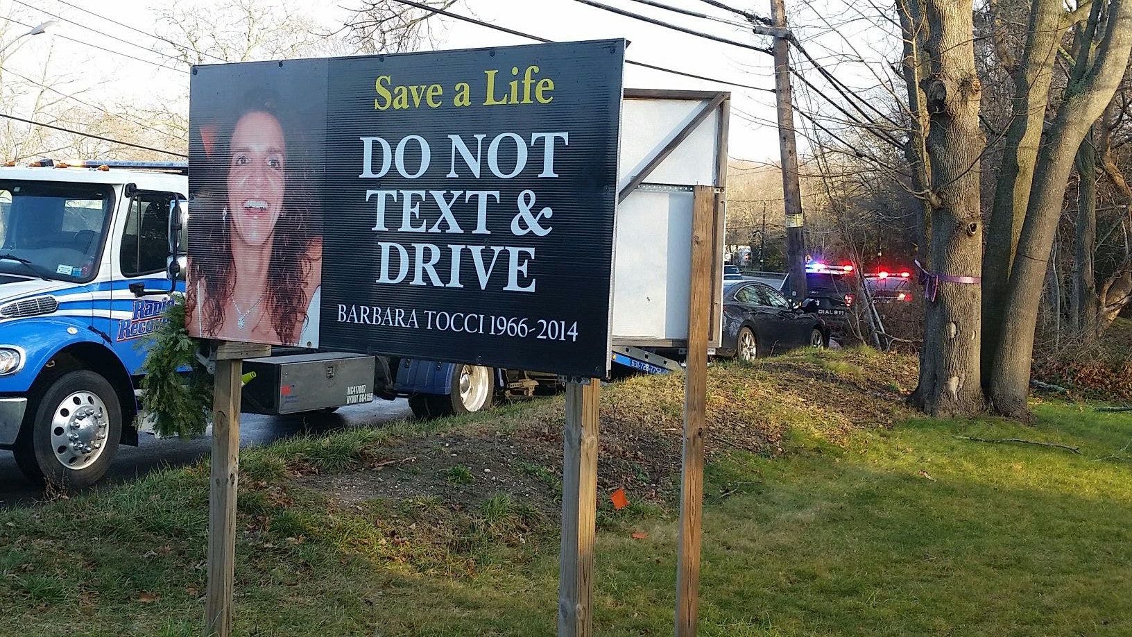 Since then, Tocci has crusaded against texting while driving and driving under the influence, and the signs on her property serve as reminders of all her family has lost.