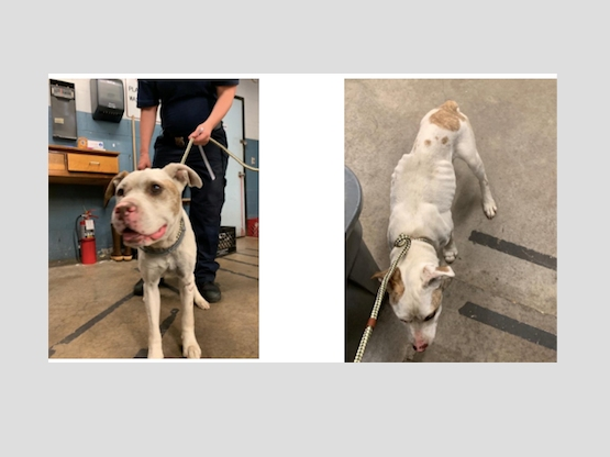 On July 9, a dog was thrown out of a car by a woman with black hair between 30 and 40 years old who was driving a tan/beige SUV, the SPCA said. The dog was dumped on Laurelton Drive in Mastic Beach between 3 p.m. and 4:30 p.m., the SPCA said. Anyone who recognizes the dog is asked to call the Suffolk County SPCA.