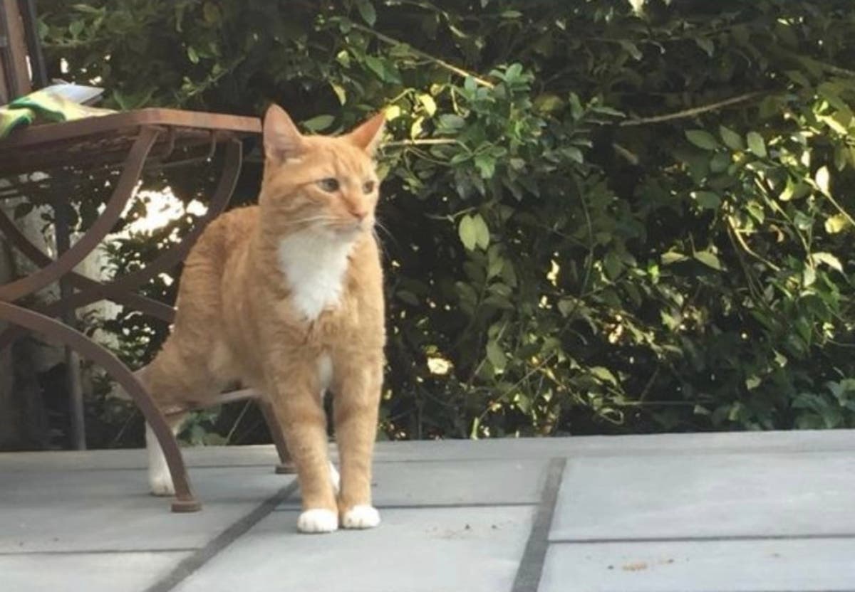 Fred, who is 9 years old and about 12 lbs., is an orange tabby with white paws and a white belly, she said.