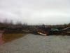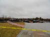 According to chatter on the fire department radio frequency, the wind was pushing the fire inside and firefighters were preparing for an exterior attack in rainy weather conditions. There appeared to be some concern for the houses to the north, according to chatter.