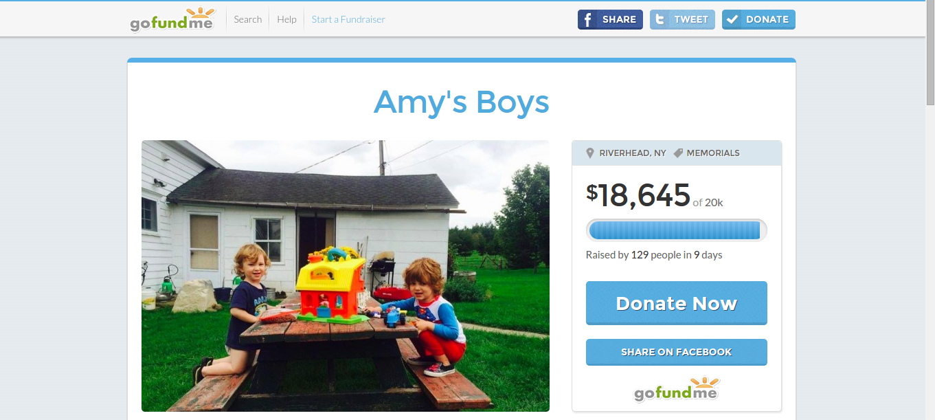 The friends of Amy Bradstreet, a Flanders woman killed on Sept. 1 in Cazenovia, NY, have started a fundraiser on GoFundMe.com to raise money for her two sons, Dougie and Jack.