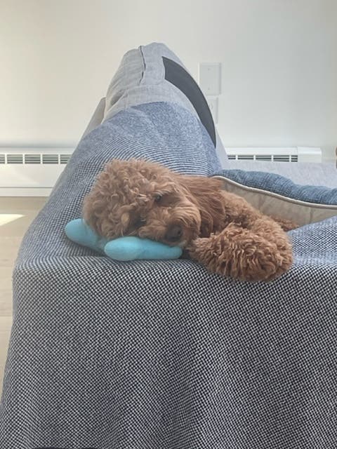 "He has loads of puppy energy, which keeps us motivated to stay active. He is with us almost all the time and loves his walks in the village. When we do leave him home, he welcomes us like it’s been years; his whole body seems to wag with happiness. P.S. He loves that blue bone!"