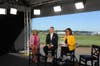 SOUTHAMPTON, NY — Thursday was not only a day to enjoy golf and the beautiful setting at the 118th U.S. Open at Shinnecock Hills, but also a day for attendees to try out the clever erector set style, 210-foot temporary pedestrian bridge over County Road 39. In addition, FOX Business Network set up a fully equipped remote TV studio on the grounds, for live broadcasting of the excitement of the Open. Eric Spinato, who books the guests for Maria Bartiromo's "Mornings with Maria" show, chose Hamptons business "stars" Dottie Herman, CEO of Douglas Elliman Real Estate, and Montauk Brewing Co. co-founders Vaughan Cutillo and Eric Moss to be interviewed by Bartiromo and Mike Murphy.