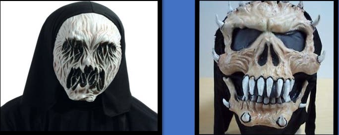 (Quogue Village Police renderings of the masks they say were worn during the Halloween robbery attempt).