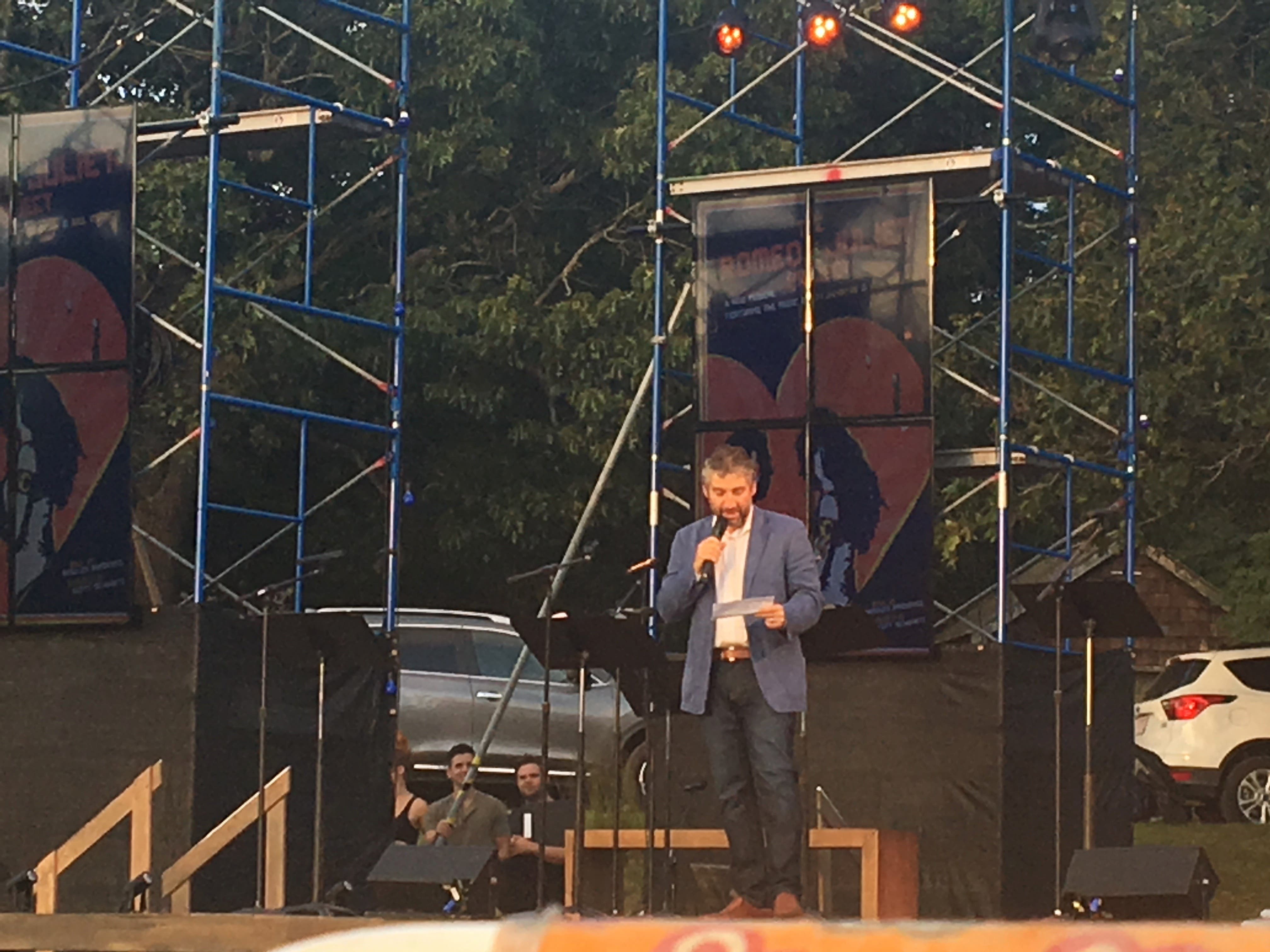 "This is the very first public presentation of this work," Schwartz told the crowd who gathered at Mashashimuet Park for the free "Under the Stars" event in Sag Harbor Friday night, adding how overjoyed he was to present the show and thanking the many supporters who came together to make vision a reality.