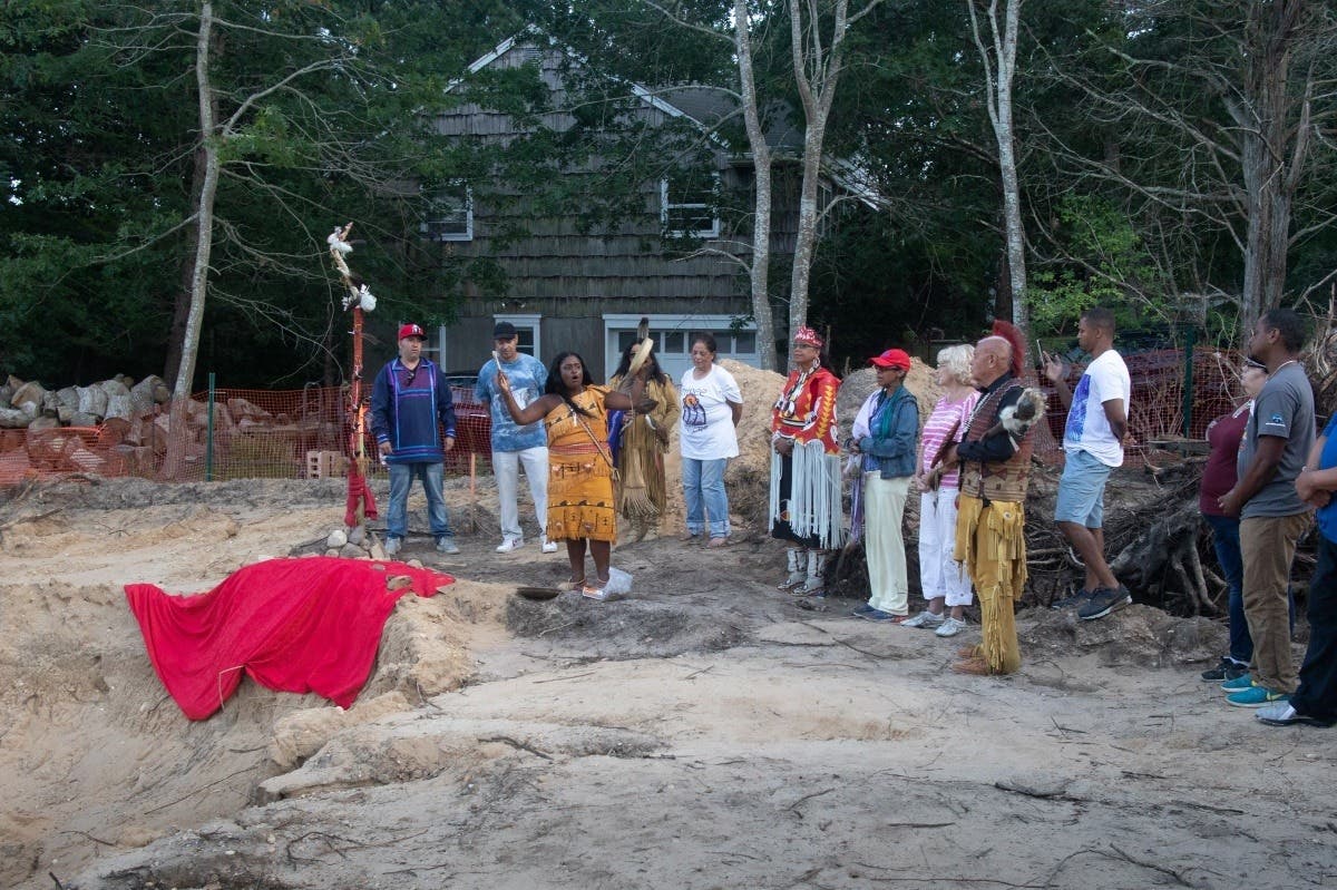 When the remains were found, the page continued, "We were helpless to stop the digging and raking of bones initially deemed by local law enforcement to be part of a crime scene. This tore at our souls. We could only offer songs, blessings, and prayers to heal our ancestor and ourselves. Yet, we are thankful that the property owner and construction workers contacted Shinnecock tribe members immediately after finding the skull and 18th century glass bottle, which signifies that this ancestor was a leader of our people during colonial times."
