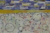 “All of our paintings have an element of chance,” Jo Ji, a native of South Korea said, referencing Jackson Pollock, who denied making any accidental marks in his work. “It’s not a conventional way of painting,” he said. Atanasova said she and Jo Ji are as creative as possible with their application of paint. “Whatever leaves a good print there, I’ll use it,” she said.