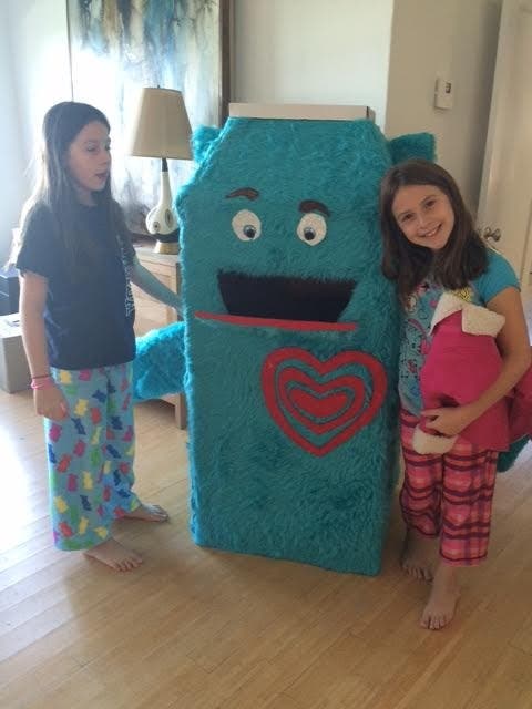 The family hopes that “Buddy”, the ‘monster’ which will be collecting the coats, will be making an annual appearance at Sag Harbor Elememtary School from now on.