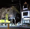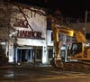 BREAKING: The heartbreaking video as the fire-ravaged Sag Harbor Cinema facade was demolished; the sign appears to have been saved.