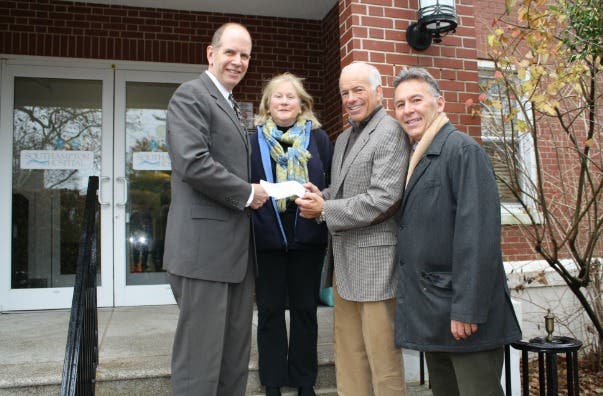 Hospital President and CEO Robert Chaloner, Showhouse Operations Manager Mary Lynch were present to receive the check from Showhouse Foundation Board Members Gary dePersia and Brian Brady.
