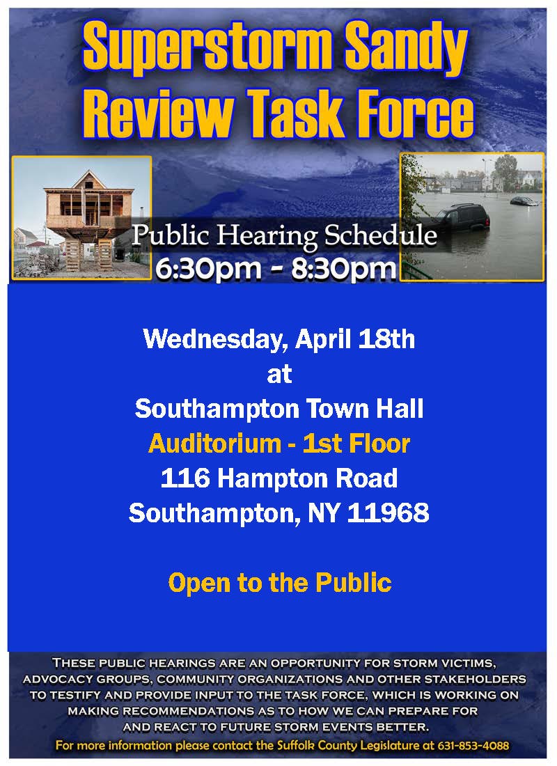 SOUTHAMPTON, NY —A Super Storm Sandy Review Task Force forum takes place in Southampton Wednesday.