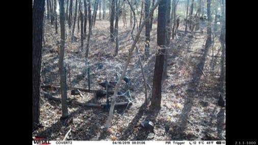 On April 16, only days after installing the camera, the ECOs remotely watched subjects place corn in the trap and pull a rope that closed the trap on the turkeys that entered, the DEC said.