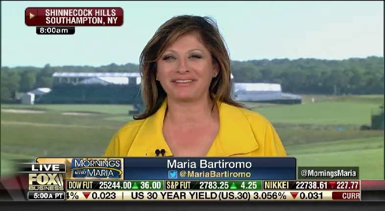 The tournament drew famous names to Southampton, with the FOX Business Network presenting special live programming from the 2018 U.S. Open golf tournament at the Shinnecock Hills Golf Club. FBN’s Maria Bartiromo anchored Mornings with Maria from the tournament on Thursday and will do so again on Friday. FBN’s reporting from the Shinnecock Hills Golf Club will continue during After the Bell, where host Melissa Francis will provide live updates.