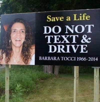 Tocci added that with all the "actual violations in the area," people are questioning a sign, on her own property, that is "nothing more than a public service message. What harm is caused by telling people not to drive under the influence or not to text and drive? I have seen numerous similar signage before a holiday weekend containing messages like 'Click it or ticket' —for the seatbelt law — or 'Stay alive, don't drink and drive.' No one seems to complain about that, but my sign is the downfall of the neighborhood? Seriously? I am convinced that this is nothing other than a personal vendetta that someone has for me."