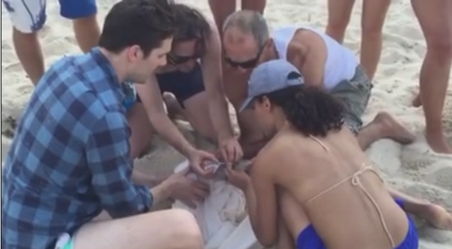 “Thanks to some Wise potato chips and the help of some fellow beach goers, the catch and release was nice and smooth,” the description reads.