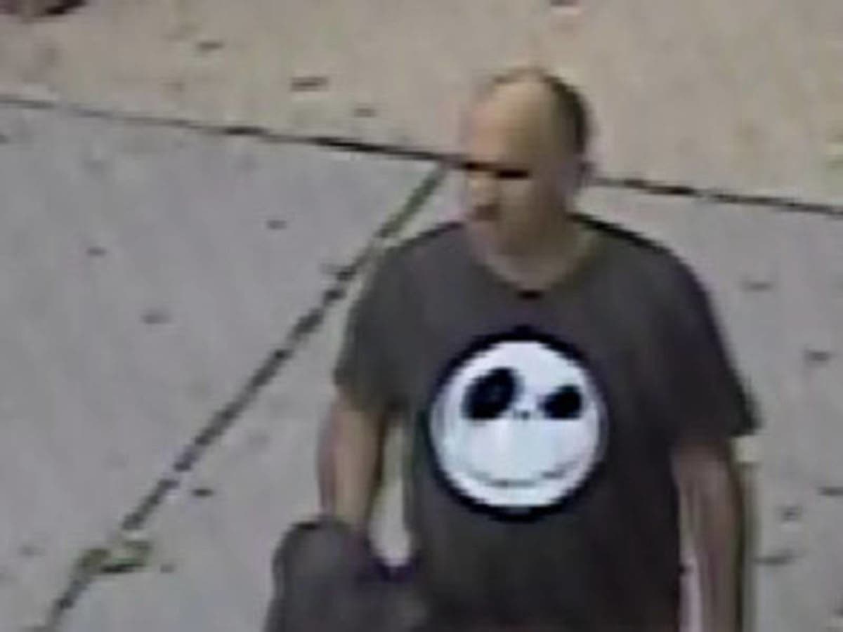 He exposed himself to the girls, asked them for directions to McDonald's and then drove away in his Subaru, police said. Fridson was caught on surveillance video wearing khaki shorts and a T-shirt with the movie character Jack Skellington on the front.