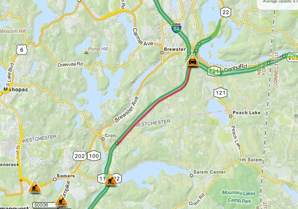 An noon accident on I-684 southbound near the I-84 interchange blocked the right hand shoulder and caused delays. The shoulder should be reopened around 2:48 p.m.