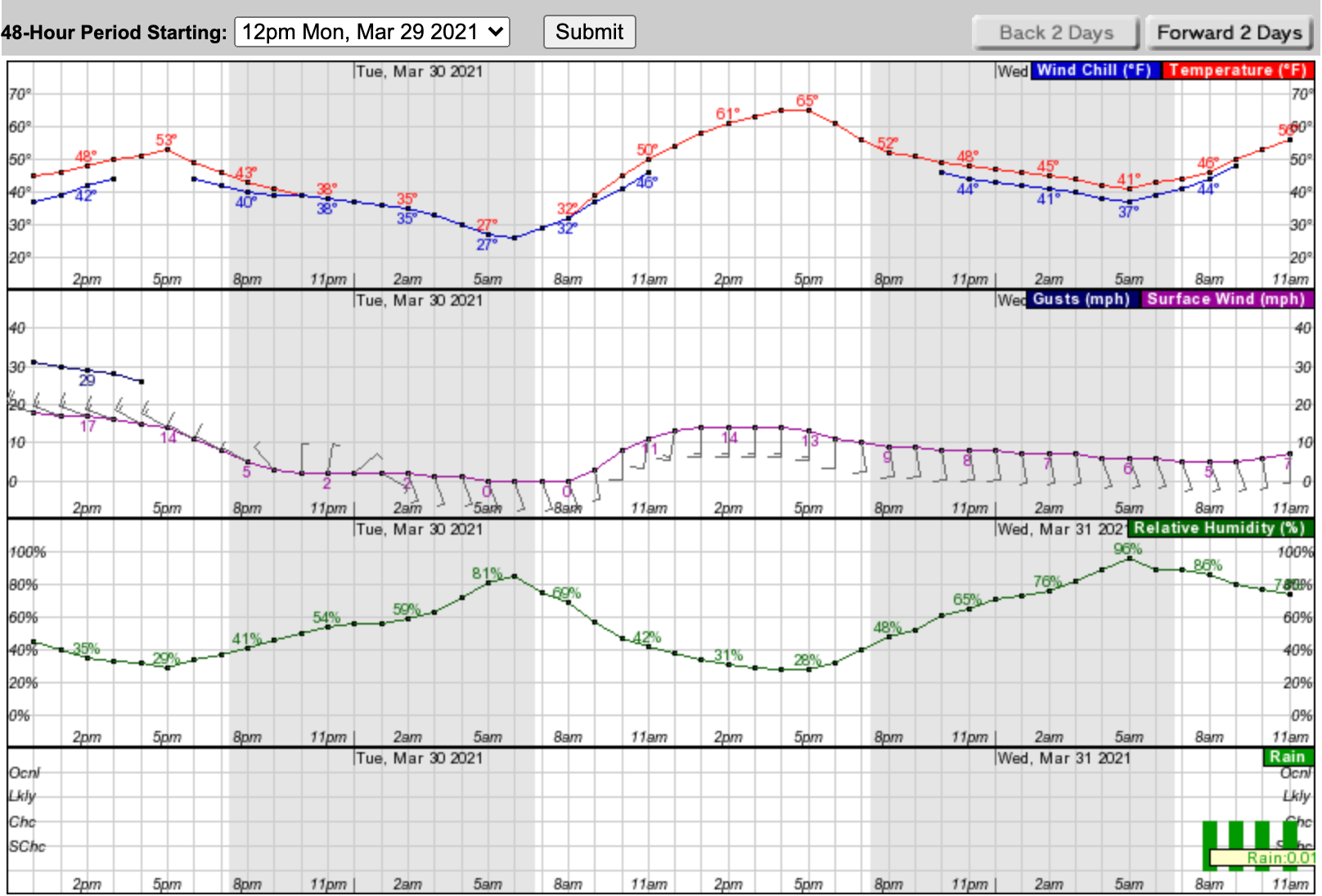 Then we're in for some dry weather with swinging spring temps. Here's a look at the next 48 hours based on Poughkeepsie: