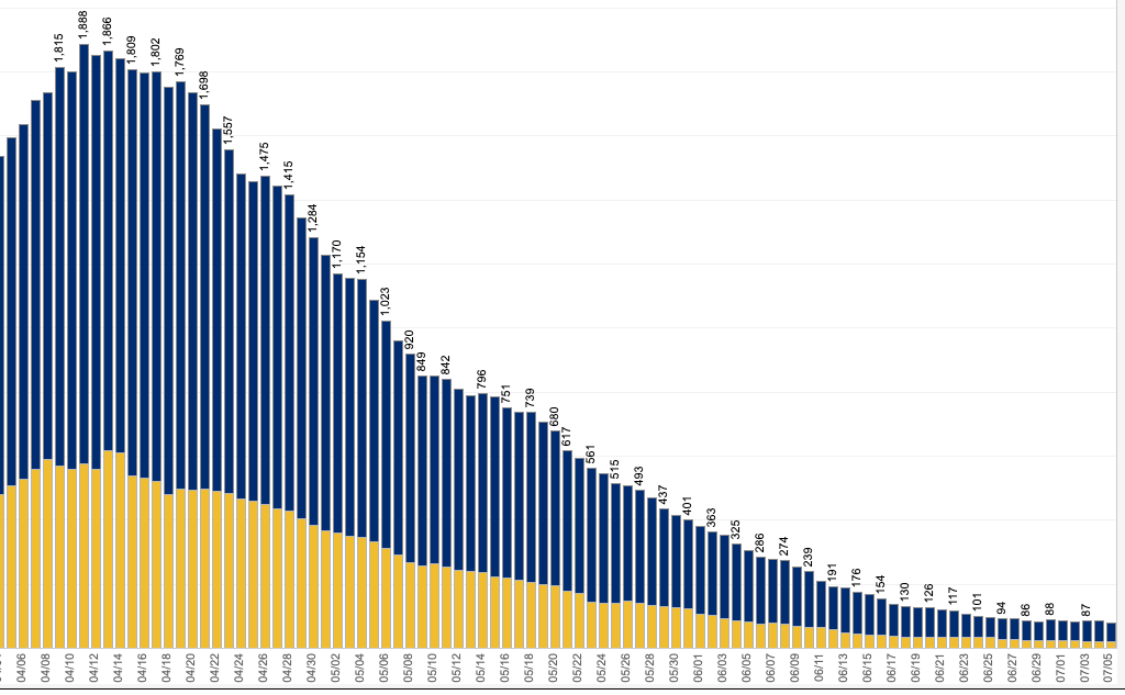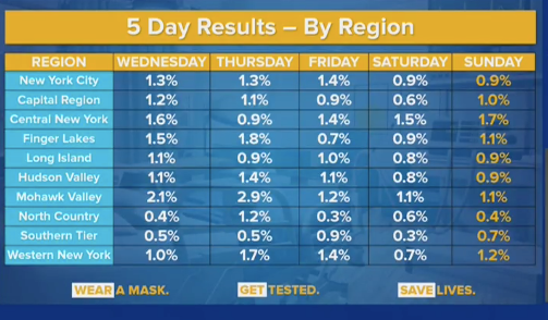 The outbreak continues to subside in New York, which on Sunday saw 1 percent of new coronavirus tests return positive.