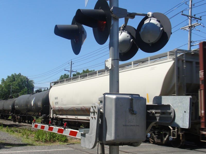 · The only safe place to cross a railroad crossing is at a designated crossing with either a crossbuck, flashing red lights or a gate.